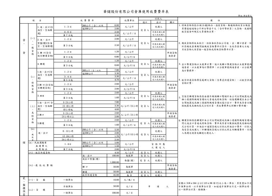 (3) 倉儲和規費:華儲冷藏倉租 + 機邊驗放規費+可申請優先拆點費 。